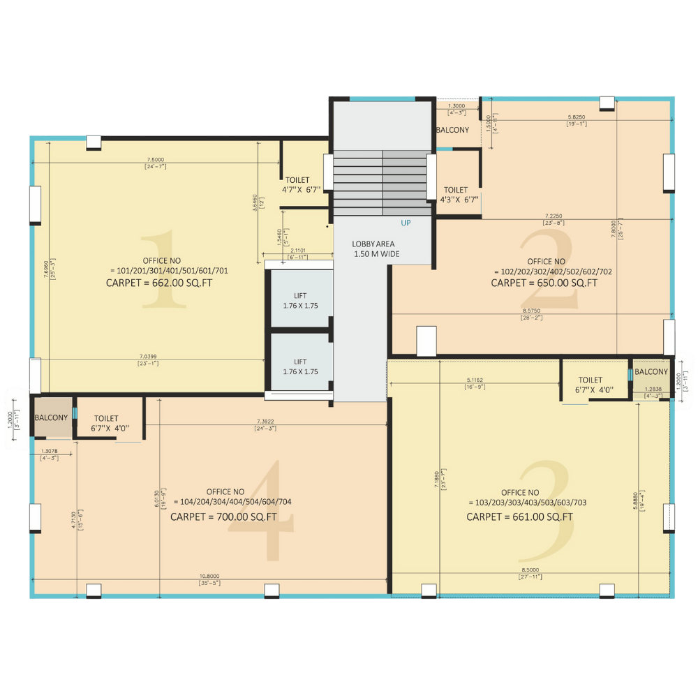 - Number of Floors: 7, with a ground levels for parking.